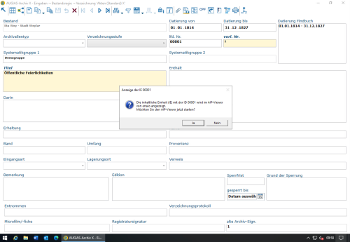 - Übernahme von Metadaten aus dem DMS zur Verzeichnung